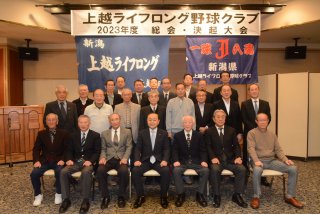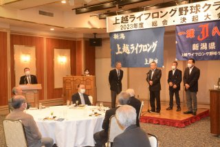 決起大会に参加した上越ライフロング野球クラブ還暦と古希のメンバー