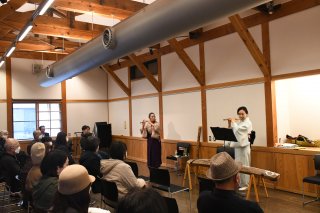 高田小町で行われた「はらいきよめ 氣性音(きふね)」による、しの笛ミニライブ(4日)