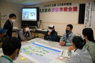 参加者による意見交換。講師の福井さん(左)も短時間で多くの意見が出たことに驚き、取り組みの継続に期待した