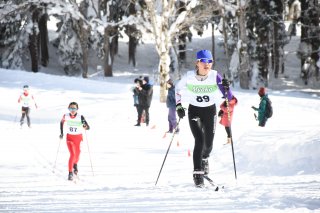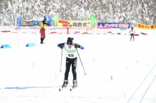 男子3キロクラシカル。選手が順次、フィニッシュした(赤倉観光リゾートクロスカントリーコース)