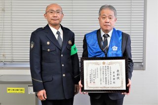 内山署長から表彰状の伝達を受けた原さん(右、同署)