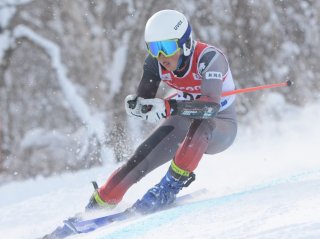 中学男子大回転、優勝した松尾颯の2回目の滑り