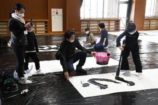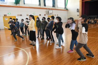 演劇本番に向けた練習の様子。児童の出演は3シーンあり、それぞれに特徴がある
