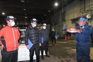 2キロ台のマダイがご祝儀価格で競り落とされた(一印上越魚市場)