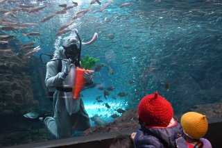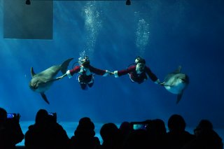 「大人のおひとりさま水族館」で披露されたドルフィンパフォーマンスのクリスマスバージョン