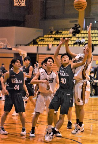 男子1・2位トーナメント準決勝、上越総合技術(白)―高田