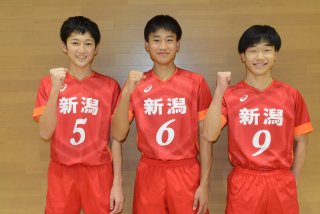新潟県選抜男子の(左から)竹田、小澤、下鳥の上越勢3選手