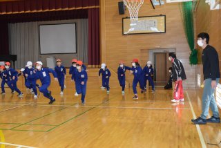 子どもたちの動きに目を配る講師の駒村さん(右)と小川さん(その奥)