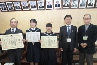 県教育長賞を受賞した竹谷さん(中央)と地区優秀賞の小林さん(左から2人目)