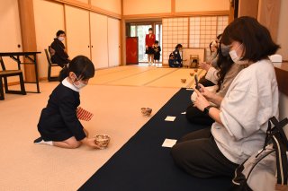 年長児が春からの稽古の成果を披露。茶を運んでもてなした