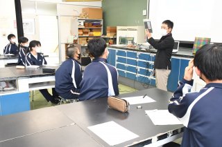 吉川の特産や名所などを紹介する吉川中1、2年生