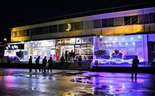 小中学生らが作った新しいオーナメントなども加え、今冬のイルミネーション点灯が始まった能生駅