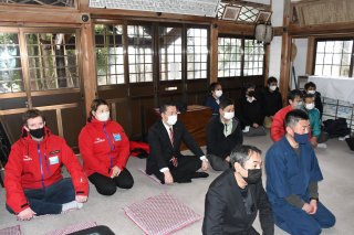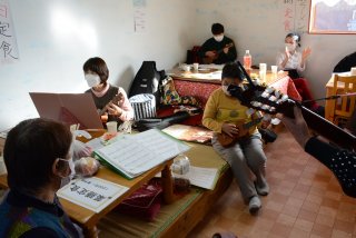 須藤さん(奥右)のために感謝の演奏を披露するメンバーら