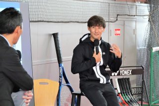 講演会で自身の歩みや今後の抱負について語る島袋選手