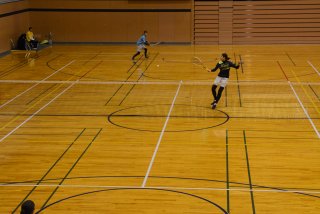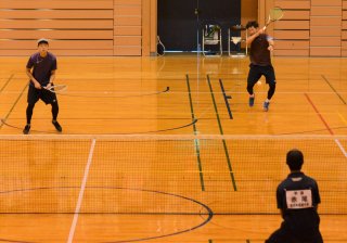 男子Bブロック、與川(右奥)・池田ペアのプレー