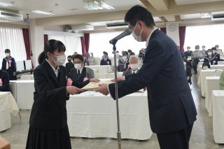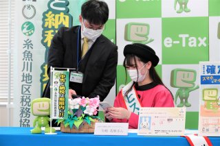 高田税務署の水沼仁志署長から表彰を受ける野﨑さん