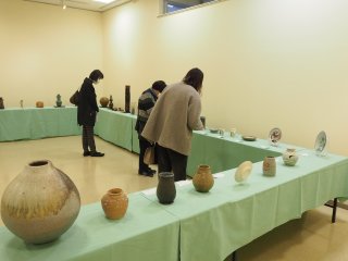 今回が最後となった上越陶芸展。105点の作品が会場に並ぶ