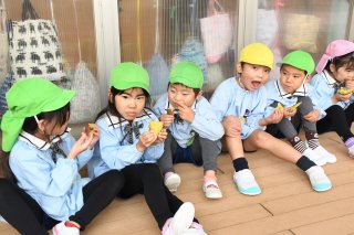 年長児のミュージカル「ダチョウのエルフとなかまたち」。園児たちがさまざまな動物を演じた