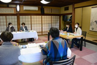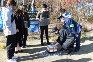 長年にわたる桜の保全活動について講話する青木さん(右)