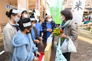 斐太北小5年生 朝市で「照華米」販売 学校田で育て