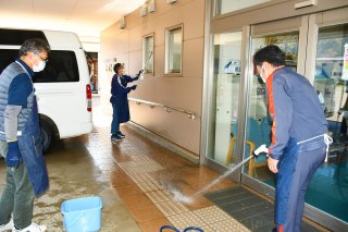 主に施設の外を清掃。新たに玄関のタイルなど、普段できない清掃を行った