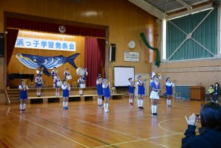 本年度が最後となるマーチングバンド演奏を披露する6年生