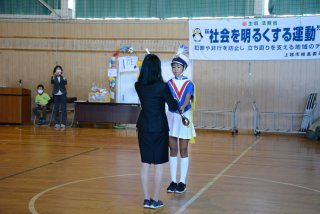 指揮棒を返還するドラムメジャーの小山さん
