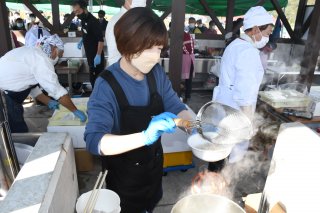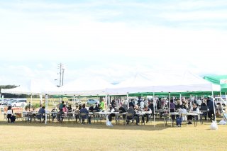 設営テントでそばを味わう