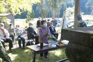 玉串をささげ、仲間の健康と絆が続くことを願う人たち