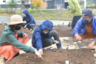 春の開花を待ちわびながらチューリップの球根を伏せる作業が続いた