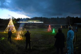 初日5日は電車運行に合わせて花火も打ち上げ。近隣や通り掛かった人も点灯を見守った