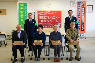 当選者4人に防犯機能付き電話機を贈呈。近日中に設置されるという