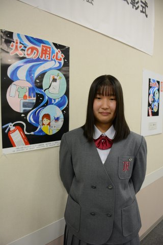 最優秀賞を受賞した大山優希奈さんと作品を使用したポスター