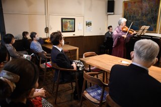 再開1回目はバイオリンとピアノのデュオリサイタル。室内に響く旋律に聴き入った
