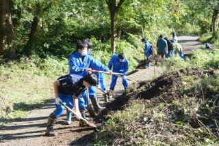 集落内の「村道」の土砂を撤去。生徒の力に筒井さんも感謝