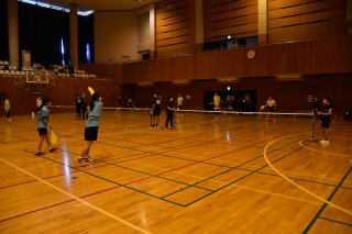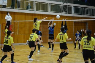 女性バレーボール、Aコート、Dynamicco9(手前)―NTO・46