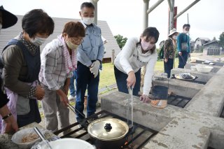 70人近くが参加しキャンプを体験。テント張りや料理を作って味わい、交流した