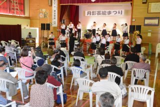なじみのある曲を披露し、会場と一体の雰囲気を醸し出す浦川原中吹奏楽部の演奏