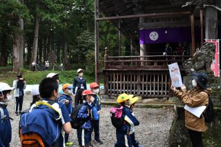 力いっぱいつるを引き抜く年長児たち。つるにつながって姿を現す芋も