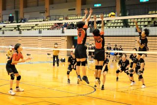 男子予選グループ戦、上越クラブB(手前)―上越クラブC