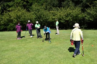 10組に分かれて8ホール・3ラウンドを回る参加選手