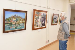 メンバーの作品を見る講師の小関さん