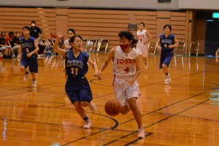 バスケットボール、男子Aブロック決勝、大潟町(黒)―城西
