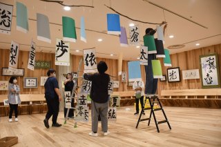 前日の展示作業の様子。自由と個性のアート展ができあがった
