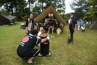 気の合う仲間や家族でキャンプ。地元産の野菜や新米も調理し、楽しんだ
