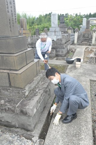 数十年ぶりに発見された取材テープと野村さん(23日、上越市大手町の市川家で)