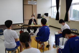 地域おこし協力隊の福井さんが、活動のやりがいや目標を生徒に語った