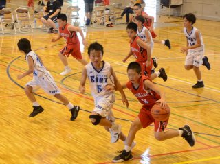 3年ぶりに行われた交流事業のミニバスケットボールフェスティバル。写真は上越ジョーズ(赤)―上越EAST