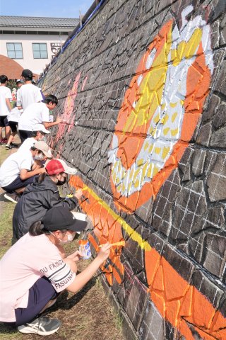 「大潟の四季」や人魚をテーマに描く、大潟町中の2年生たち(13日)