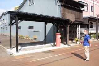 建て替えられた「ど根性雁木」を眺める松倉町内会長